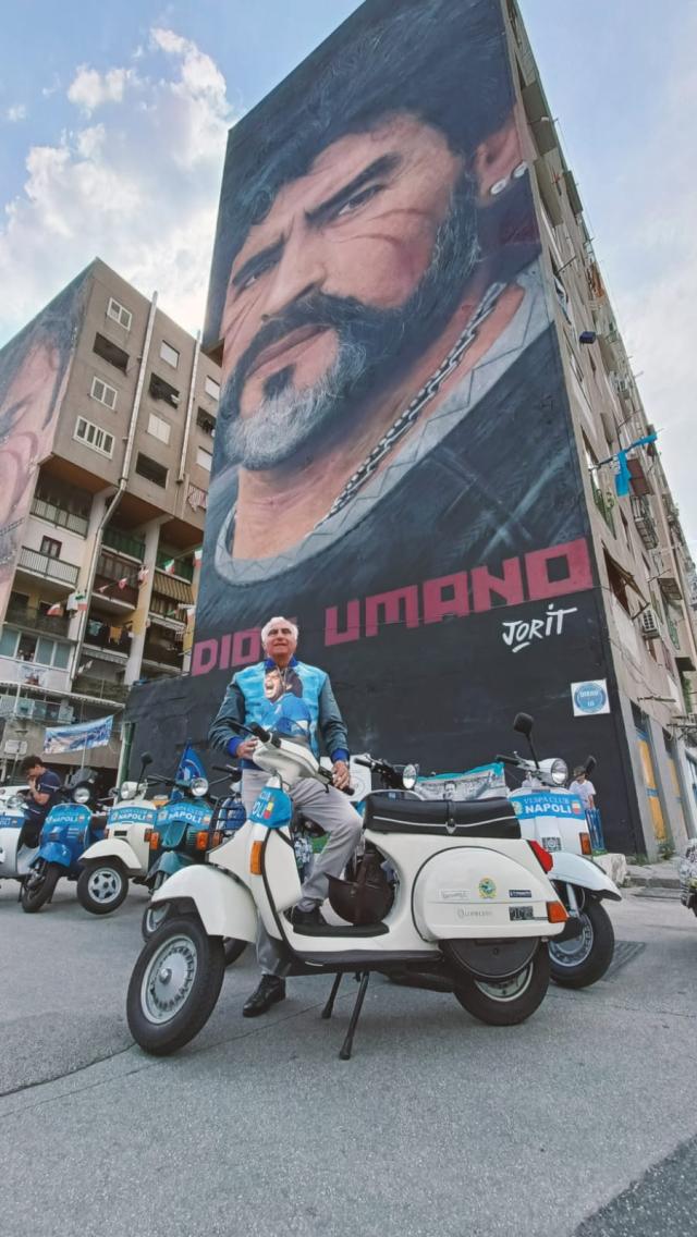 Partito dal Museo Vespa di Marco Fumagalli di Seregno, vicino a Milano, il “Raid” è arrivato allo stadio di Napoli, intitolato proprio a Maradona, mercoledì pomeriggio accompagnato dai soci del vespa club di Napoli.