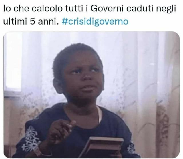 Le dimissioni del premier incaricato Mario Draghi hanno provocato la terza crisi di Governo in 3 anni: sul web è tutto in proliferare di meme. Il più bersagliato di tutti è il presidente della Repubblica Sergio Mattarella, il quale - per inciso - ha respinto le dimissioni di Draghi, arrivate in un momento "particolare" per così dire della legislatura, con la crisi economica alle porte e la guerra che infuria in Europa tra Ucraina e Russia. Altri protagonisti sono poi naturalmente l'ormai quasi ex Premier Mario Draghi e il leader del Movimento 5 stelle Giuseppe Conte, che - dopo essere caduto due volte (una volta per mano di Salvinie una volta per mano di Renzi) - ha deciso di passare dall'altra parte, provando a fare lo sgambetto all'ex presidente della Bce.