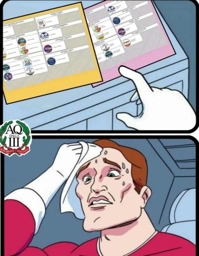 Alle 7:00 di domenica 25 settembre 2022 si sono ufficialmente aperte le urne delle elezioni politiche 2022: in rete sono circolati meme di ogni sorta. Per una volta, possiamo dirlo, il popolo variegato del Web ha dimostrato di avere più genio e fantasia che cattiveria. Tutti i partiti politici e tutti i leader politici in generale sono stati presi di mira, senza eccezioni di sorta. Tra le pagine social più prolifiche in tema di meme non si può non citare aqtr.official su Instagram. Tuttavia, a scatenarsi, sono stati soprattutto utenti privati. Nella nostra gallery si possono vedere qualcuno dei loro capolavori. Qual è stato il più bello? Quale quello che vi ha fatto ridere di più?