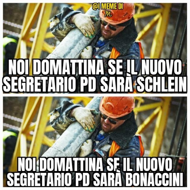 Ecco una GALLERY dei migliori meme prodotto dalla parte più irriverente del web in merito alla primarie del PD. La più bersagliata - ma non poteva essere altrimenti - è la neo segretaria Elly Schlein, segue lo sconfitto Bonaccini. Questa volta non c'è stata una pagina social che ha spiccato più delle altre in fantasia. Certo è che qualcuno ci è andato giù pesante, prendendo in giro l'aspetto dei due contendenti, in particolare quello della Schlein.