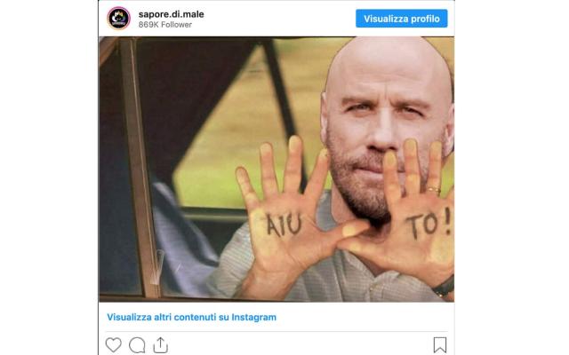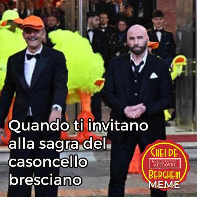 Poi spazio su quelli relativi alla seconda serata, con soggetto, ovviamente, John Travolta. L'attore, protagonista di alcuni classici come "La febbre del sabato sera" e "Greese" è senza dubbio il preferito in queste ore. "Come credi di apparire, come appari", riprendendo una storica scena di Pulp Fiction. In un altro meme viene mostrato Travolta con la scritta "Aiuto" sulle mani. Sempre Travolta, "quando ti invitano alla sagra del casoncello bresciano".