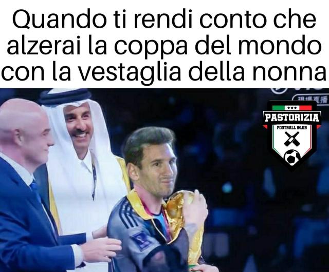 Tuttavia, anche il grande protagonista di questo mondiale, Leo Messi, che ora può finalmente essere considerato a pieno titolo e da tutti il degno erede di Diego Armando Maradona, si è visto protagonista di qualche meme irriverente. In particolare, il campione argentino, più volte vincitore del Pallone d'Oro, è stato preso di mira per la vestaglia, simile a una zanzariera, indossata mentre alzava la coppa del mondo.
