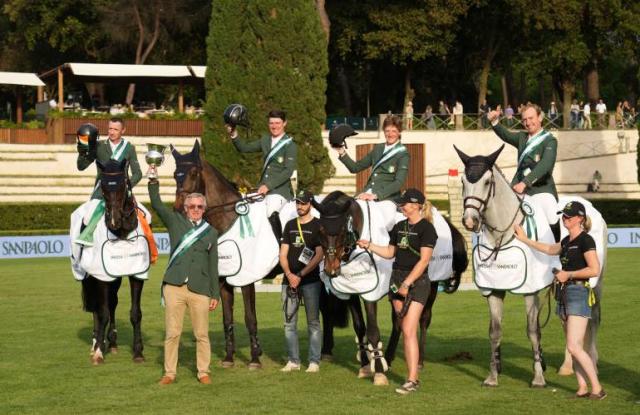 La squadra irlandese ha avuto la meglio, vincendo per la prima volta la Coppa a Roma. Sui sei ostacoli dello spareggio, Pender ha collezionato il terzo netto della sua gara