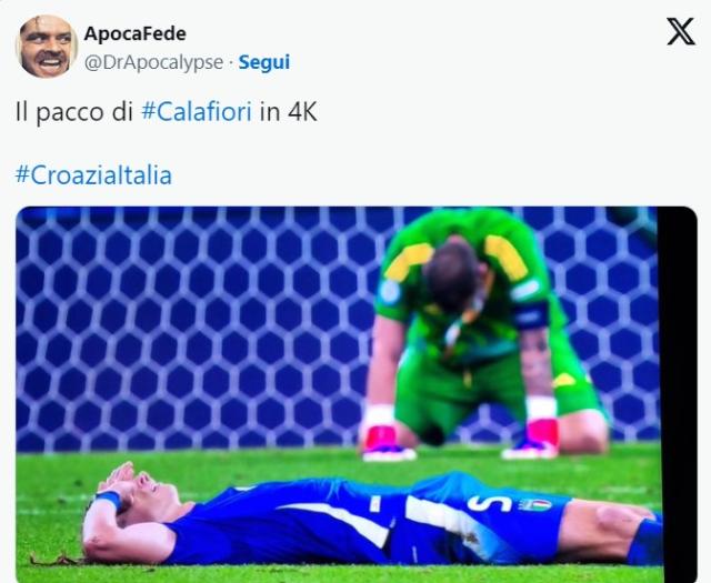 Ora i meme riguardano un dettaglio decisamente non irrilevante. Dopo aver fornito l'assist a Zaccagni, il quale ha poi messo a segno il gol che ha portato l'Italia a pareggiare con la Croazia nell'ultimo minuto di partita (ottavo minuto di recupero), Calafiori si è buttato a terra. Si è messo le mani in testa e ha iniziato a piangere. Da un lato provava sicuramente felicità per il pareggio che ha portato all'uscita dagli Europei della Croazia, consentendo all'Italia di rimanere, dall'altro c'era la delusione per la squalifica. Lui salterà gli ottavi.