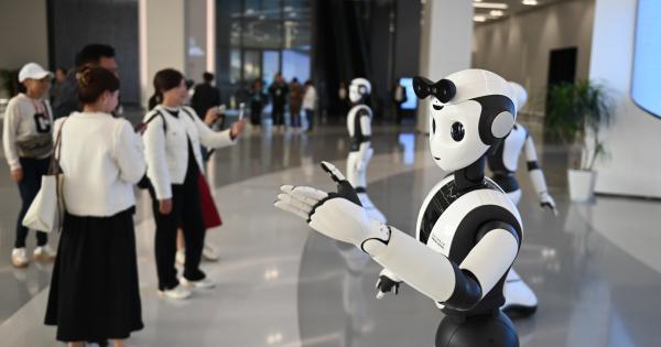 (XINHUA) - TONGXIANG, 8 NOV - Persone osservano dei robot che ballano presso il Museo mondiale di scienza e tecnologia di Internet a Wuzhen, nella provincia orientale cinese dello Zhejiang, ieri 7 novembre 2023. Il museo è stato inaugurato ufficialmente ieri. Con una superficie coperta di circa 43.000 metri quadrati, il museo ha allestito sei aree espositive permanenti, presentando le tecnologie chiave, gli eventi di riferimento e il personale di spicco dell'industria globale di Internet, delineando il processo di sviluppo di Internet. (XINHUA)