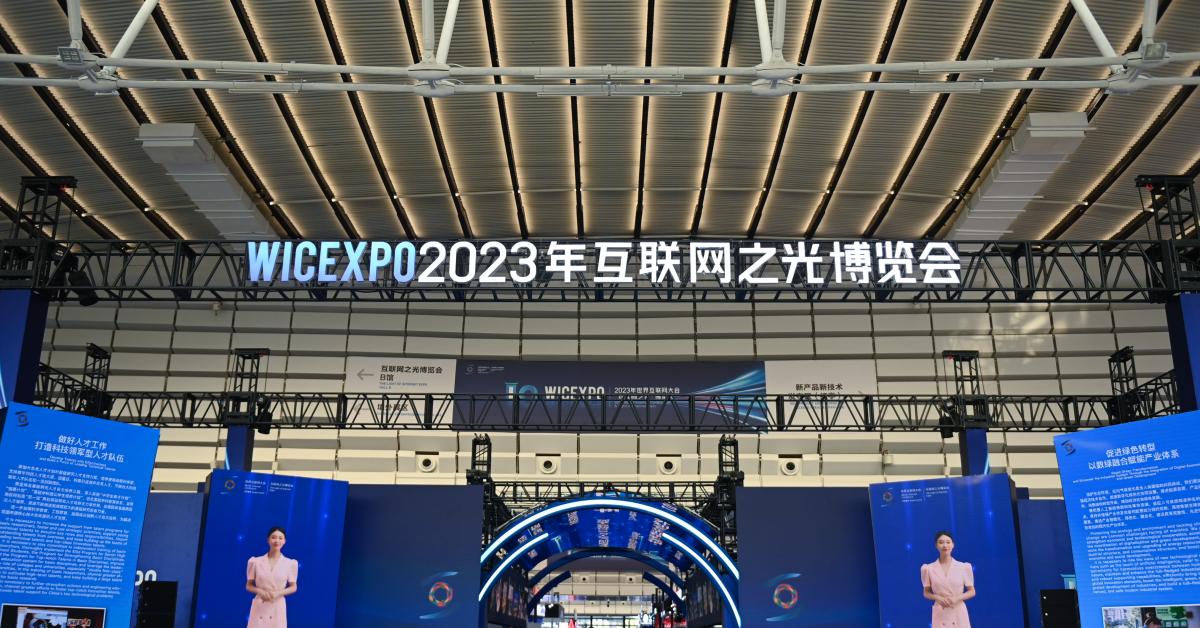 (XINHUA) - TONGXIANG, 8 NOV - Questa foto, scattata ieri 7 novembre 2023, mostra una veduta della Light of Internet Expo a Wuzhen, nella provincia orientale cinese dello Zhejiang. La fiera ha preso il via ieri nella città, con diverse zone espositive a tema, come l'intelligenza artificiale e la tecnologia digitale, e con zone espositive caratteristiche, come l'area espositiva estera. (XINHUA)