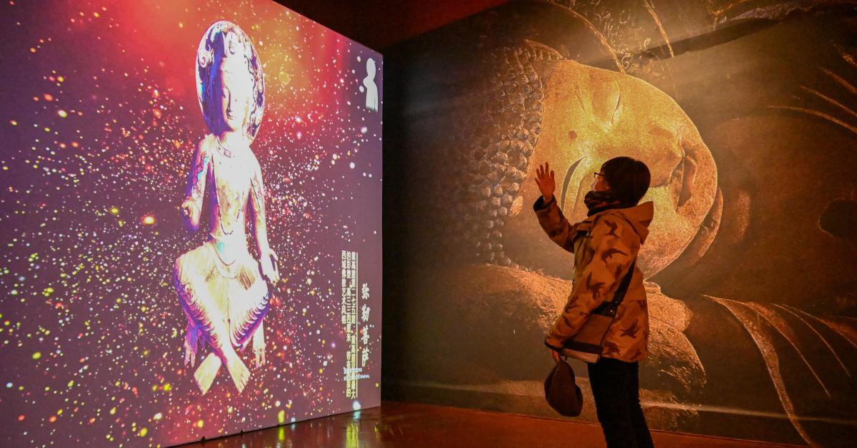 (XINHUA) - TIANJIN, 29 NOV - Una visitatrice ammira un reperto digitale a una mostra sul tema della cultura di Dunhuang, presso il Tianjin Digital Art Museum, nell'omonima municipalità settentrionale cinese, ieri 28 novembre 2023. La mostra durerà fino a marzo 2024. (XINHUA)