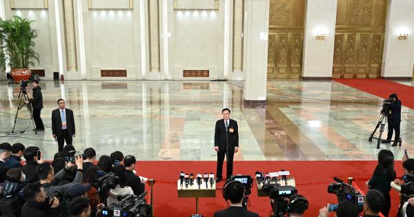 (XINHUA) - PECHINO, 5 MAR - Zhang Yuzhuo, presidente della Commissione per la supervisione e l'amministrazione degli asset di proprietà statale del Consiglio di Stato, rilascia un'intervista dopo la riunione di apertura della seconda sessione della 14ma Assemblea nazionale del popolo (NPC) presso la Grande Sala del Popolo a Pechino, capitale della Cina, oggi 5 marzo 2024. (XINHUA)