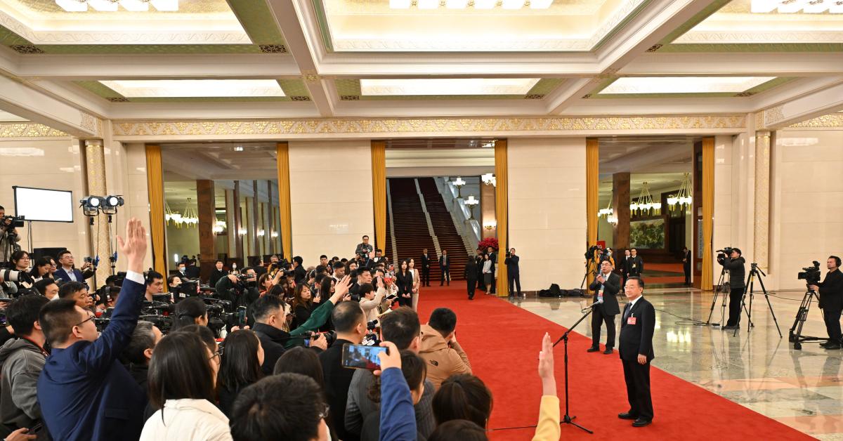 (XINHUA) - PECHINO, 5 MAR - Il ministro cinese dell'Agricoltura e degli Affari Rurali Tang Renjian rilascia un'intervista dopo la riunione di apertura della seconda sessione della 14ma Assemblea nazionale del popolo (NPC) presso la Grande Sala del Popolo a Pechino, capitale della Cina, oggi 5 marzo 2024. (XINHUA)