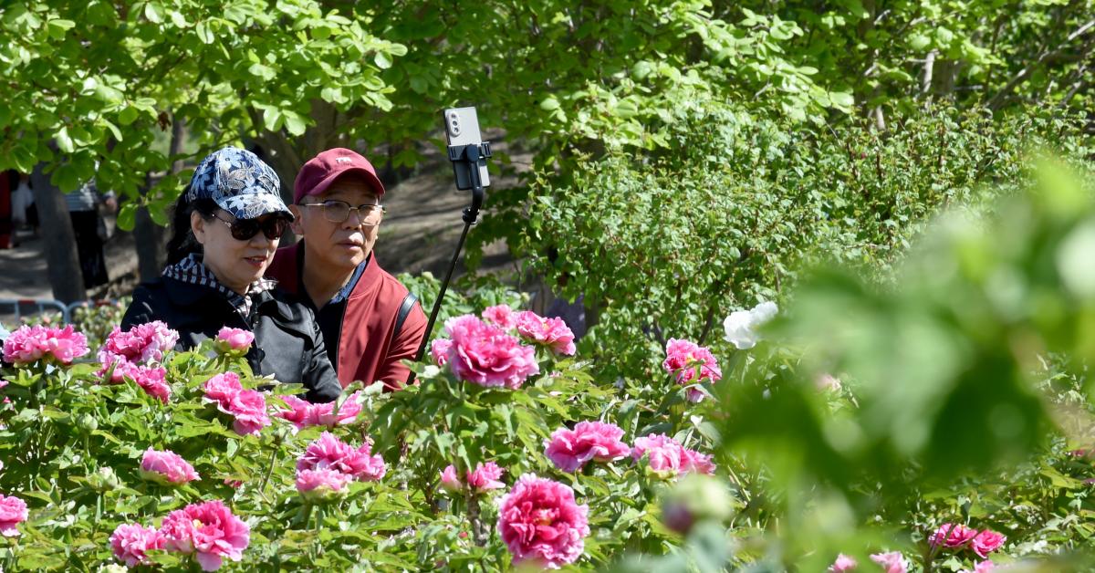 Cina: Pechino, peonie in fiore nel parco di Yuanmingyuan (1)