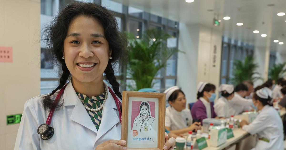 (XINHUA) - PECHINO, 20 AGO - Una dottoressa mostra il suo disegno personalizzato realizzato dai volontari durante un evento clinico gratuito presso il Peking Union Medical College Hospital (campus Dongdan) a Pechino, capitale della Cina, il 19 agosto 2025. Il Peking Union Medical College Hospital (PUMCH) ha organizzato ieri un evento clinico gratuito per celebrare l'ottava Giornata dei Medici. Più di 50 rappresentanti del personale medico hanno fornito consulenze sanitarie in loco ai pazienti. Nel frattempo, i volontari dell'ospedale hanno disegnato vignette personalizzate per il personale medico partecipante. Istituita nel 2018, la Giornata dei Medici in Cina si celebra ogni anno il 19 agosto per onorare i medici del Paese e il loro contributo. (XINHUA)