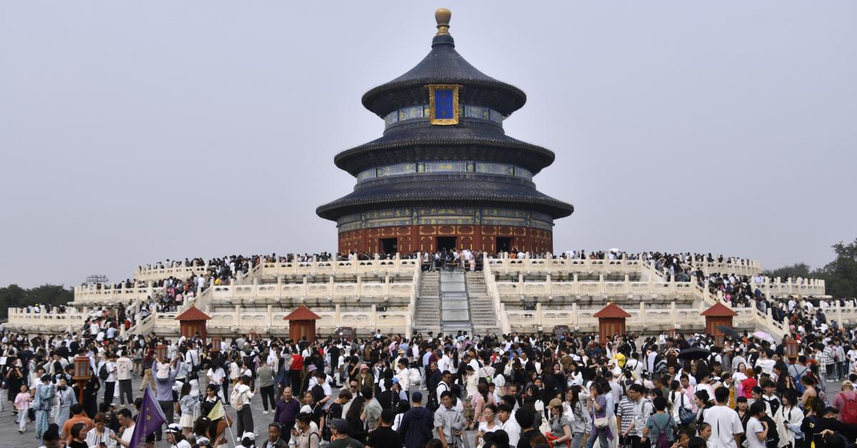(XINHUA) - PECHINO, 5 OTT - Persone visitano il Tempio del Cielo a Pechino, capitale della Cina, il 4 ottobre 2025. Le destinazioni turistiche in tutta la Cina hanno registrato un aumento dei visitatori con l'inizio, mercoledì, della vacanza di otto giorni per la Giornata nazionale e il Festival di metà autunno. (XINHUA)