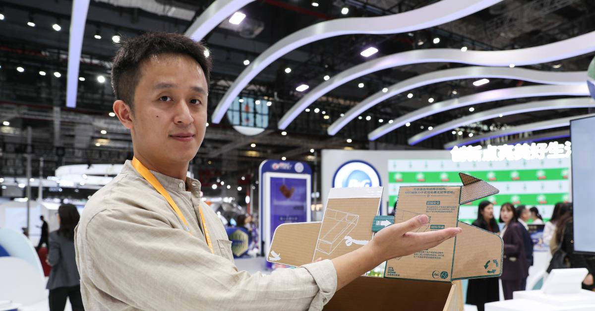 (XINHUA) - SHANGHAI, 7 NOV - Un membro dello staff di Procter & Gamble (P&G) mostra una nuova confezione ecologica, che può essere sigillata senza l'uso di nastro adesivo, nell'area espositiva dedicata ai beni di consumo durante l'ottava China International Import Expo (CIIE) in corso a Shanghai, nella Cina orientale, il 6 novembre 2025. Qui, numerosi espositori hanno presentato i loro ultimi prodotti. (XINHUA)