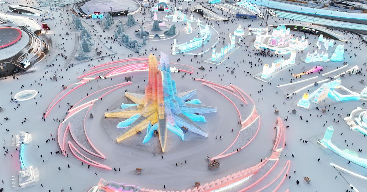 Il parco si estende su una superficie record di 1,2 milioni di metri quadrati e utilizza 400.000 metri cubi di ghiaccio e neve, e il tema di quest'anno è "Ghiaccio e neve, un mondo delle fiabe".