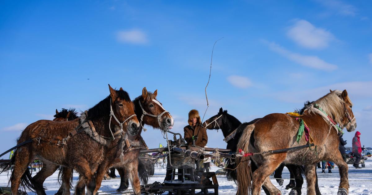 (XINHUA) - SONGYUAN, 9 GEN - Dei cavalli tirano un verricello per il recupero delle reti a Songyuan, nella provincia nord-orientale cinese del Jilin, il 7 gennaio 2026. Qui giovedì si è aperta la 24esima edizione del Festival culturale e turistico della pesca e della caccia sul ghiaccio e sulla neve del lago Chagan. Qui vengono eseguite tecniche di pesca tradizionali, come la perforazione manuale del ghiaccio, l'uso di verricelli tirati da cavalli e il recupero delle reti sotto la superficie ghiacciata. La pesca sul ghiaccio del lago Chagan, patrimonio culturale immateriale nazionale, è diventata un importante simbolo della cultura del ghiaccio e della neve nel nord-est della Cina. (XINHUA)