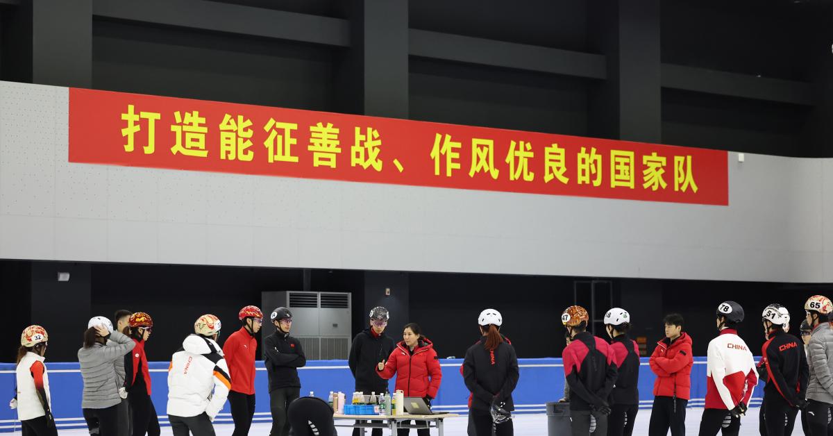 (XINHUA) - PECHINO, 30 GEN - Zhang Jing (al centro), capo allenatore della squadra cinese di pattinaggio di velocità su pista corta, istruisce gli atleti durante una sessione di allenamento in vista dei prossimi Giochi olimpici invernali di Milano-Cortina 2026 a Pechino, in Cina, il 29 gennaio 2026. (XINHUA)