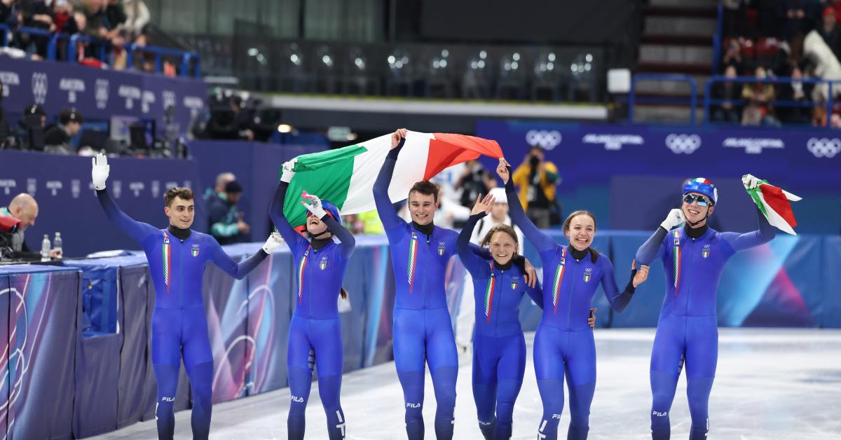 L'allenatrice cinese Qi Mengyao, di 38 anni, ha guidato l'Italia sul gradino più alto del podio nella staffetta a squadre miste di pattinaggio di velocità su short track, conquistando la prima medaglia d'oro in questa disciplina ai Giochi.