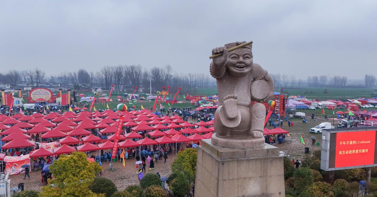 (XINHUA) - BAOFENG, 2 MAR - Una foto aerea scattata con un drone mostra una veduta della Fiera del Quyi nel villaggio di Majie della contea di Baofeng, nella provincia centrale cinese dello Henan, l'1 marzo 2026. Questa fiera annuale, una grande festa per gli appassionati di Quyi, si è tenuta domenica, nell'ambito delle celebrazioni in corso della Festa di primavera. Il Quyi si riferisce a una scuola delle arti popolari tradizionali cinesi in forme narrative e cantate. La Fiera del Quyi di Majie, molto partecipata nonostante il maltempo, vanta una storia di oltre 700 anni, ed è stata iscritta nel primo elenco nazionale del patrimonio culturale immateriale nel 2006. (XINHUA)