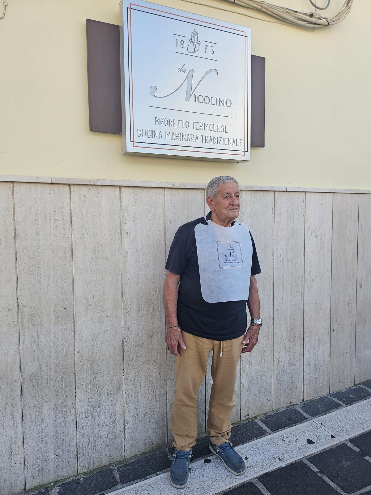 Nicolino arriva con il bavaglino e con tutta la libertà di godersi ogni goccia: perché qui non si mangia per fare bella figura, si mangia per ricordare chi siamo. E il bavaglino diventa quasi un piccolo gesto rivoluzionario, una carezza che ti dice: qui puoi lasciarti andare, puoi sporcarti, puoi ridere.