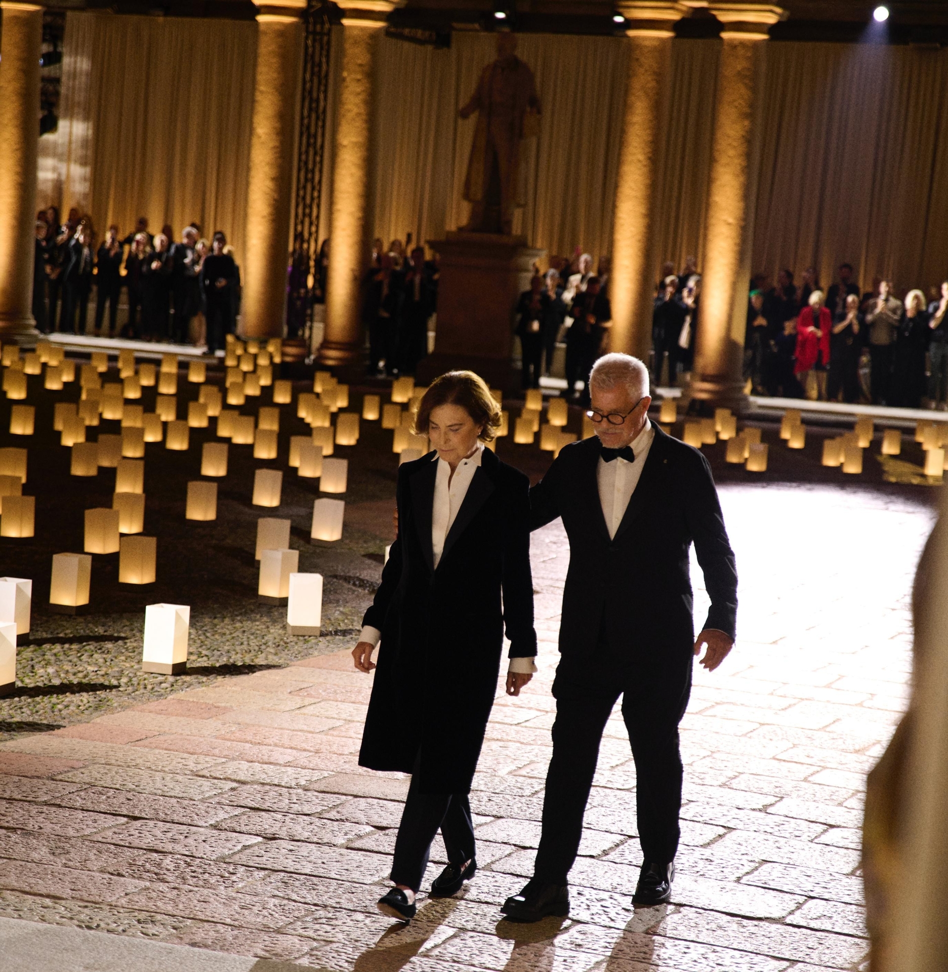 Non mancavano figure del giornalismo e della televisione, come Lilli Gruber con Jacques Charmelot e Myrta Merlino con Marco Tardelli, né i grandi nomi della moda internazionale, amici e rivali, da Santo e Francesca Versace a Dries Van Noten, Paul Smith e i Caten brothers, tutti riuniti per celebrare un’icona che ha fatto della propria vita un’arte dedicata alla bellezza, al rigore e alla libertà.