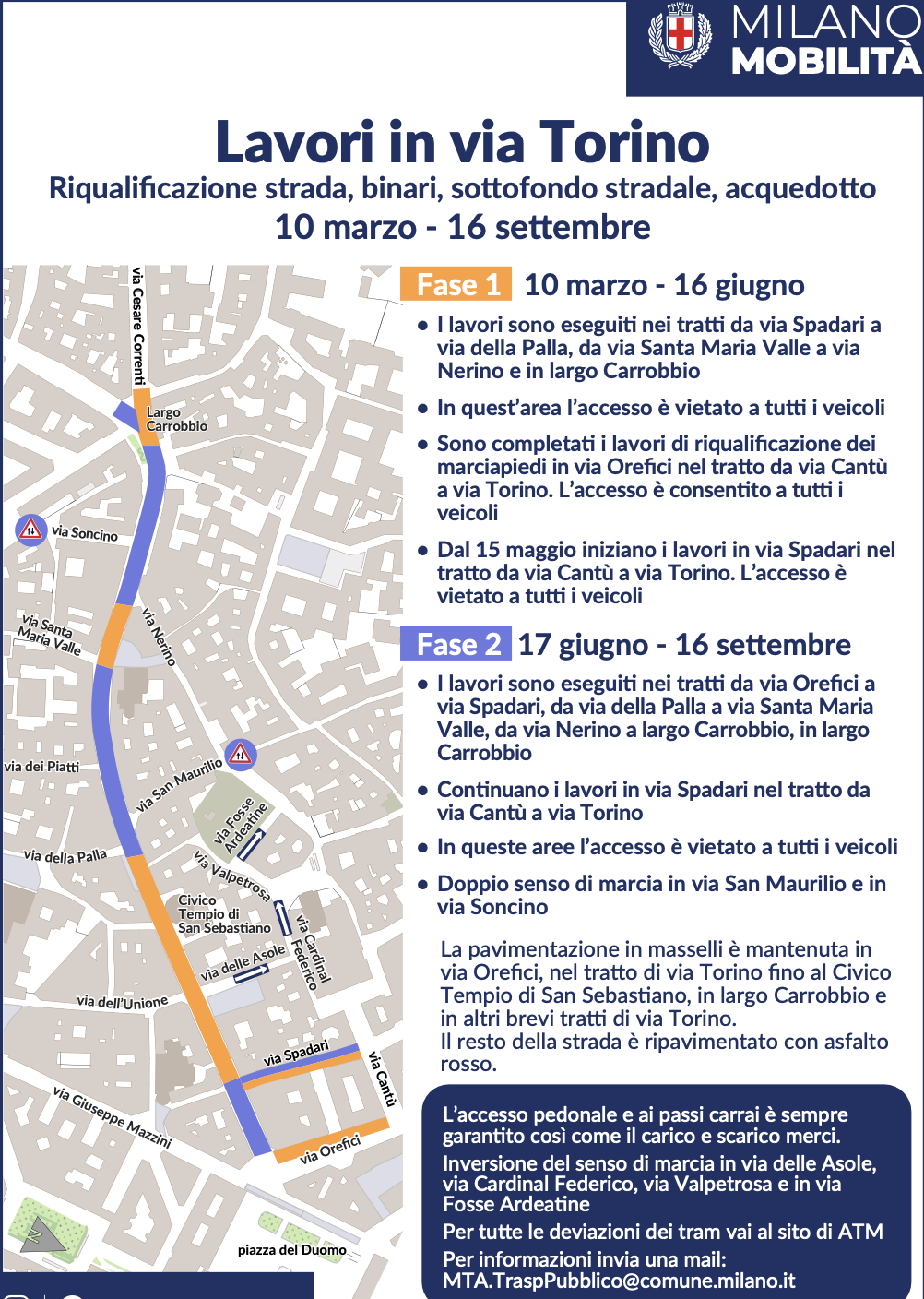 Visti i cantieri di via Torino e di Via Cesare Correnti, via San Maurilio dovrebbe essere permessa solo a chi ha accessi carrai.