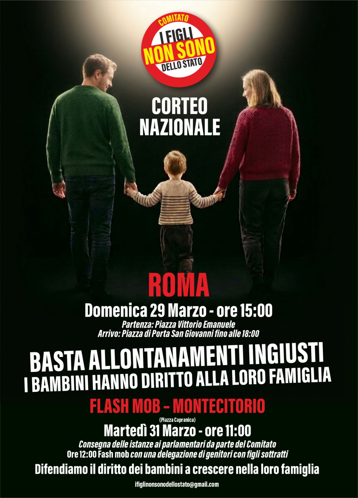 Il comitato "I Figli non sono dello Stato" lancia una conferenza stampa alla Camera dei Deuptati, in programma per giovedì 19 marzo (festa del Papà), per esporre in Parlamento il problema dell'attuale situazione dell'allontanamento dei figli, provvedimento che, secondo la co-fondatrice del comitato Simona Boccuti, "sta diventando una prassi burocratica".