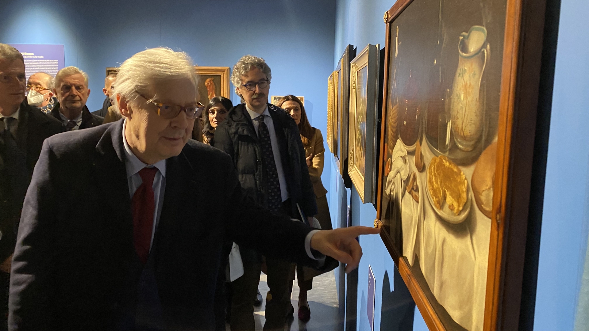 Esposti nella sala dei Ritratti di Palazzo dei Priori, ottanta dipinti che in realtà “sono molti di più”, come sottolinea la curatrice Daniela Ferrari nella conferenza di apertura. Il tema del quadro nel quadro è ricorrente, ed è il filo conduttore che regge la manifestazione artistica, definita da Sgarbi: “l’ultima festa della pittura italiana”. Un periodo particolare, durante il dopoguerra, che scopriamo attraverso le ottanta opere esposte. Sono autori di queste tele i “Pittori moderni della realtà”, nati nel 1947. Un gruppo di artisti anticonformisti nei confronti del modernismo, inconsueti e desiderosi di recuperare la grande tradizione pittorica del passato; erano ispirati dall’arte seicentesca caravaggesca, dalla pittura spagnola e da quella fiamminga. Una resilienza estetica ed etica volta a riscoprire il valore del ritorno al mestiere, teorizzato da Giorgio de Chirico che li ha incoraggiati e aiutati durante le prime esposizioni. Superstiti del conflitto mondiale appena vissuto, questi artisti avevano a cuore la rinascita dell’arte pittorica e in concomitanza la rinascita dell’umanità.
