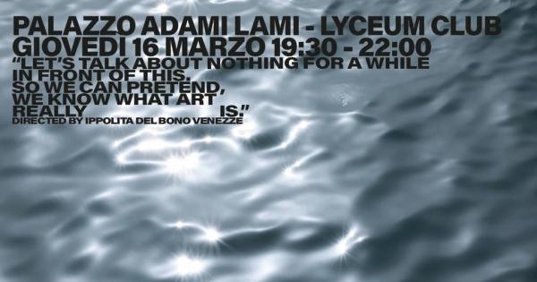 Un’esperienza creativa immersiva dove saranno esposte opere di artisti che utilizzano medium creativi diversi con la speranza di aprire un dialogo su quello che è uno dei dubbi più vecchi dei nostri tempi, cosa è l’arte? E come comunità abbiamo il diritto di riservare tale termine per un gruppo ristretto di opere? Sono alcune delle domande a cui cercherà di dare risposta la giovane regista fiorentina e visual artist Ippolita del Bono Venezze che raggrupperà dalle ore 19,30 di giovedì 16 marzo al Lyceum club Firenze di Lungarno Guicciardini, ospitato al piano nobile di Palazzo Adami Lami, insieme alle sue opere fotografiche e al suo corto ’Going nowhere’, le sculture in ceramica dell’artista romana Vittoria Notarbartolo di Villarosa, le opere della galleria d’arte contemporanea Iguarnieri, le parole liriche della poetessa Ginevra Frezza e la cucina dello chef Simone Pinato. Il titolo della serata? “Let’s talk about nothing for a while in front of this So we can pretend. We know what art really is.”. Ippolita del Bono Venezze vocalizza, molto esplicitamente, tramite il titolo della serata, la propria frustrazione verso un nuovo pubblico culturale nichilista che sembra preferire distruggere con critiche aspre, opere a cui non dedica che uno sguardo momentaneo, al fine di elevare se stesso a maestro culturale. Tramite le inquadrature compulsive del suo corto, proiettato in loop durante l’evento, e le sue fotografie, Ippolita del Bono Venezze enfatizza come arte sia per lei, ciò che ha il potenziale di salvare. Salvare in maniera catartica, sia lo stesso autore, che quel pubblico con pensieri affini, che può finalmente vedere le proprie difficoltà tradotte in un’opera d’arte. Quindi uscire dagli schemi imposti dalla società, per poter discutere, tramite le proprie opere, le difficoltà personali e interpersonali che ogni individuo attraversa, solitamente in silenzio. Questa è la prima serata artistica immersiva organizzata dalla nuova amministrazione del Lyceum club. Fondato nel 1910 da Donna Beatrice Pandolfini dei Principi Corsini, il Lyceum Firenze continua oggi a caratterizzarsi grazie all'alto profilo delle manifestazioni culturali proposte, indirizzate alla comprensione degli inediti e innovativi rapporti di equilibrio che riguardano la nostra società, fatta non di uomini e donne ma sempre più di "persone", chiamate a elaborare forme di convivenza basate su strutture non competitive né gerarchiche ma collaborative.