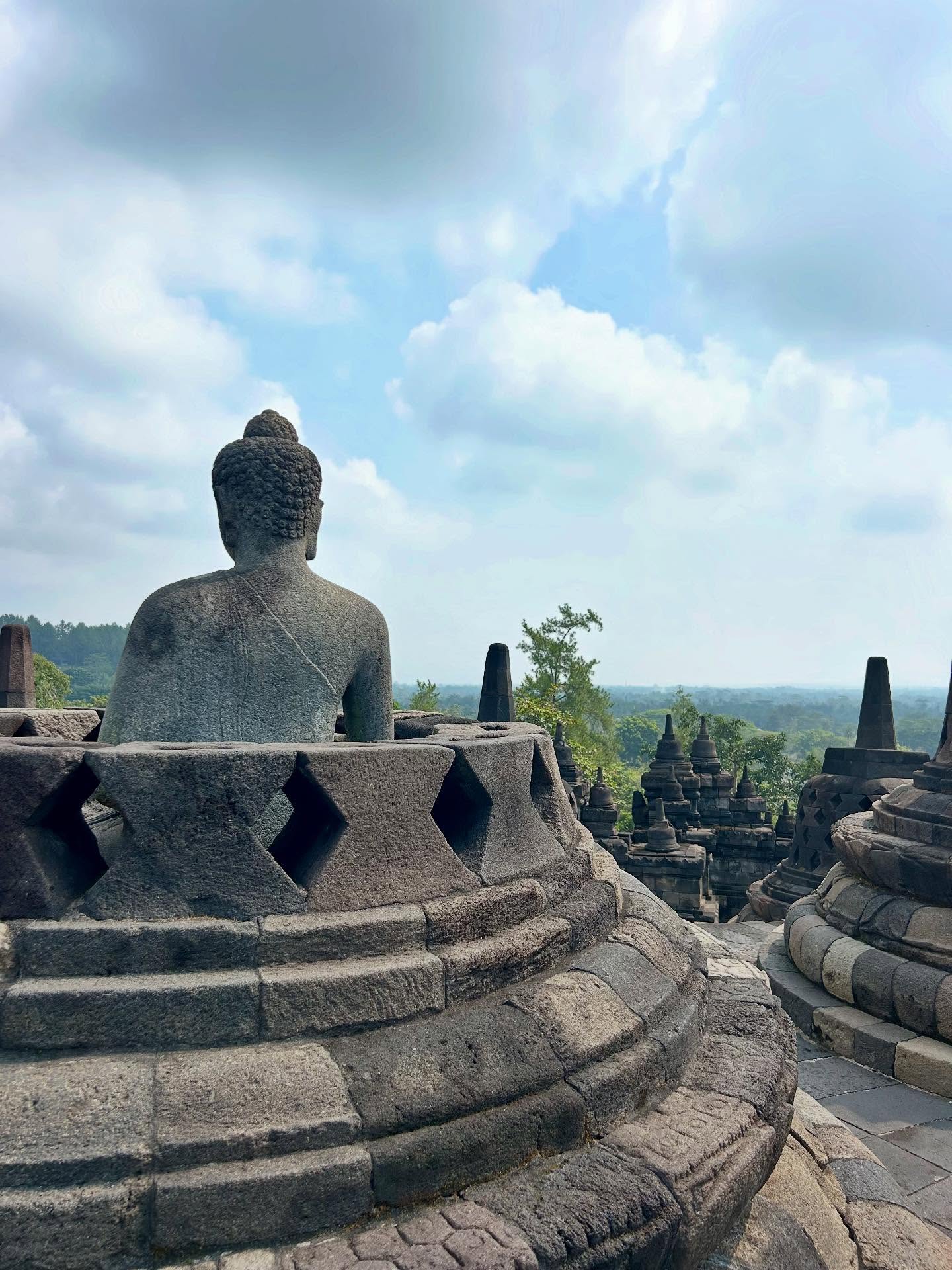 Borobudur, il più grande tempio buddhista del mondo, sorge come una montagna sacra scolpita dall’uomo. Un mandala in pietra, un viaggio iniziatico inciso nei suoi bassorilievi che raccontano la vita del Buddha, mentre oltre 500 statue silenziose vegliano sui pellegrini. Salire i suoi nove piani non è semplice turismo: è un’ascesa spirituale, un pellegrinaggio tra nuvole e vulcani. All’ultimo livello si arriva metaforicamente al Nirvana, l’aspirazione più grande per la fede del buddhismo.