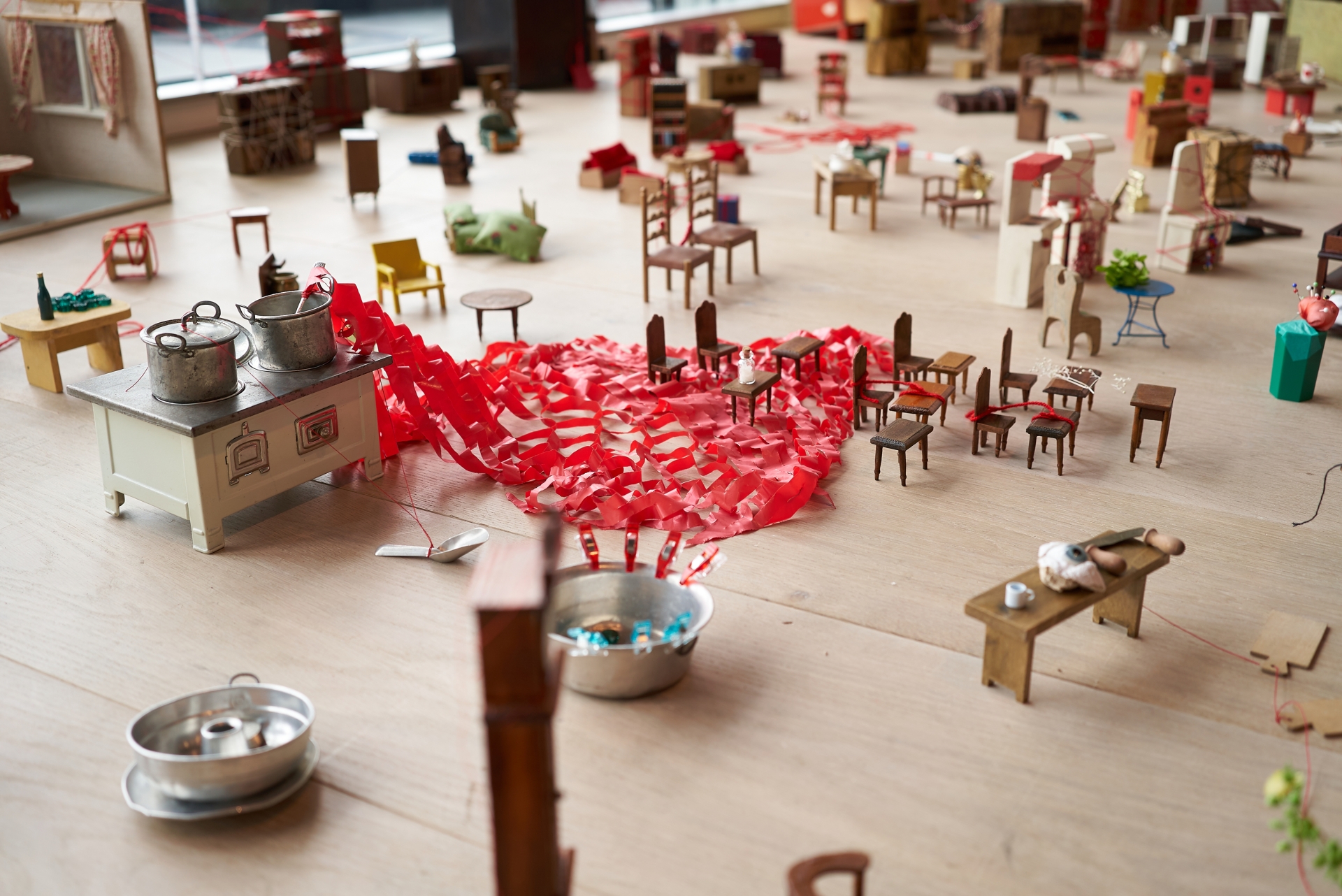 Il filo rosso che conduce lo spettatore all’interno della varie stanze della mostra ricorda inesorabilmente la leggenda orientale del filo rosso del destino: Il filo rosso del destino (運命の赤い糸, Unmei no akai ito) è una leggenda popolare di origine cinese diffusa in Giappone. Secondo la tradizione ogni persona porta, fin dalla nascita, un invisibile filo rosso legato al mignolo della mano sinistra che lo lega alla propria anima gemella. Il filo ha inoltre la caratteristica di essere indistruttibile: le due persone sono destinate, prima o poi, a incontrarsi e a sposarsi.