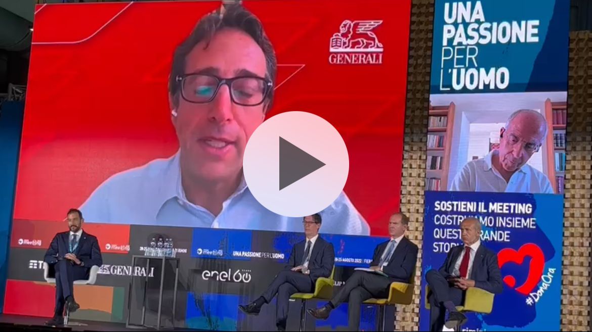 Simone Bemporad, Deputy Chairman The Human Safety Net e Chief Communication and Public Affairs Officer del Gruppo Generali, in video collegamento al convegno 'Favorire la crescita e sostenere i più deboli' in occasione del Meeting di Rimini 2022, ha affermato: