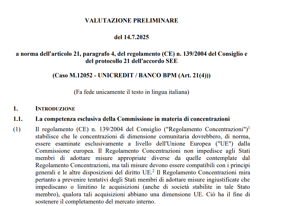 Nel documento, la Commissione manifesta dubbi sul fatto che l’operazione UniCredit rappresenti una minaccia alla sicurezza nazionale, come sostenuto dal governo. Si rileva inoltre che la composizione azionaria di UniCredit e Banco BPM presenta caratteristiche simili sotto il profilo internazionale, e si sottolinea che gli investitori esteri di UniCredit non esercitano né controllo né influenza significativa sull’attività della banca.