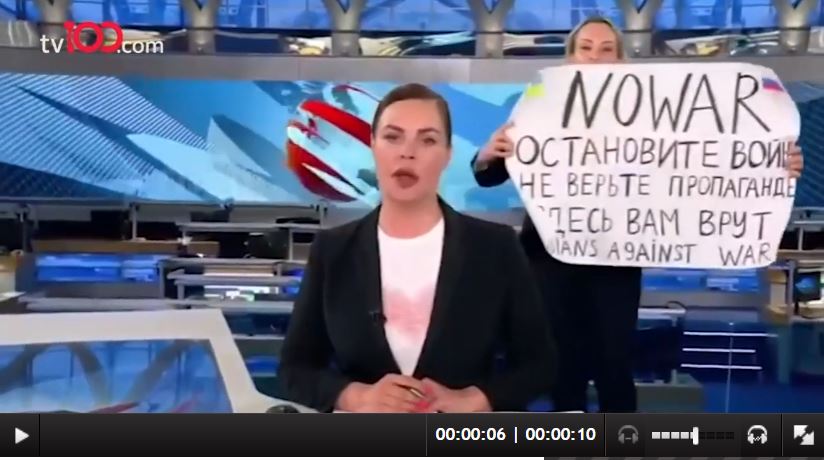 L’Ong indipendente OVD-Info e l’agenzia stampa Tass hanno confermato che la dimostrante era una dipendente del canale. Immaginiamo che il verbo al passato sia riferito al licenziamento di Marina Ovsyannikova.