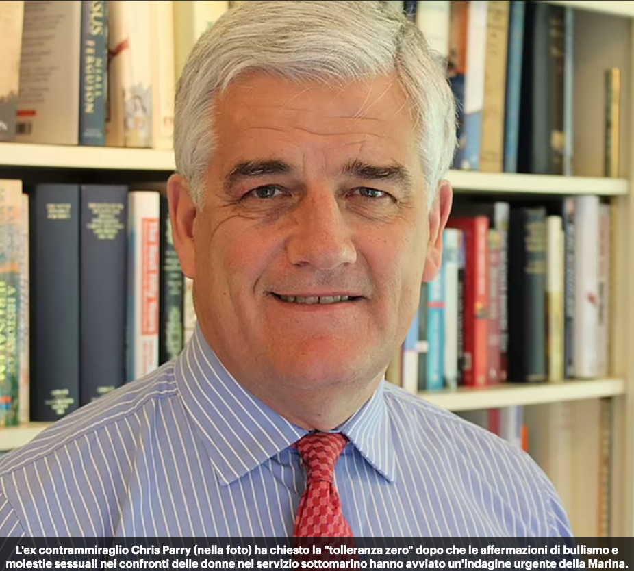 "La difesa della Gran Bretagna è più importante del tuo atto sessuale". E' questo che avrebbe pronunciato l'ammiraglio citato dal Daily Mail che condanna i colleghi che si sarebbero macchiati di simili crimini, come quelli denunciati dalla soldatessa trentenne intervistata dal Daily Mail: Sophie Brook. L'ex contrammiraglio Chris Parry ha chiesto la "tolleranza zero" dopo che le affermazioni di bullismo e molestie sessuali nei confronti delle donne nel servizio sottomarino hanno innescato un'indagine urgente della Marina.
