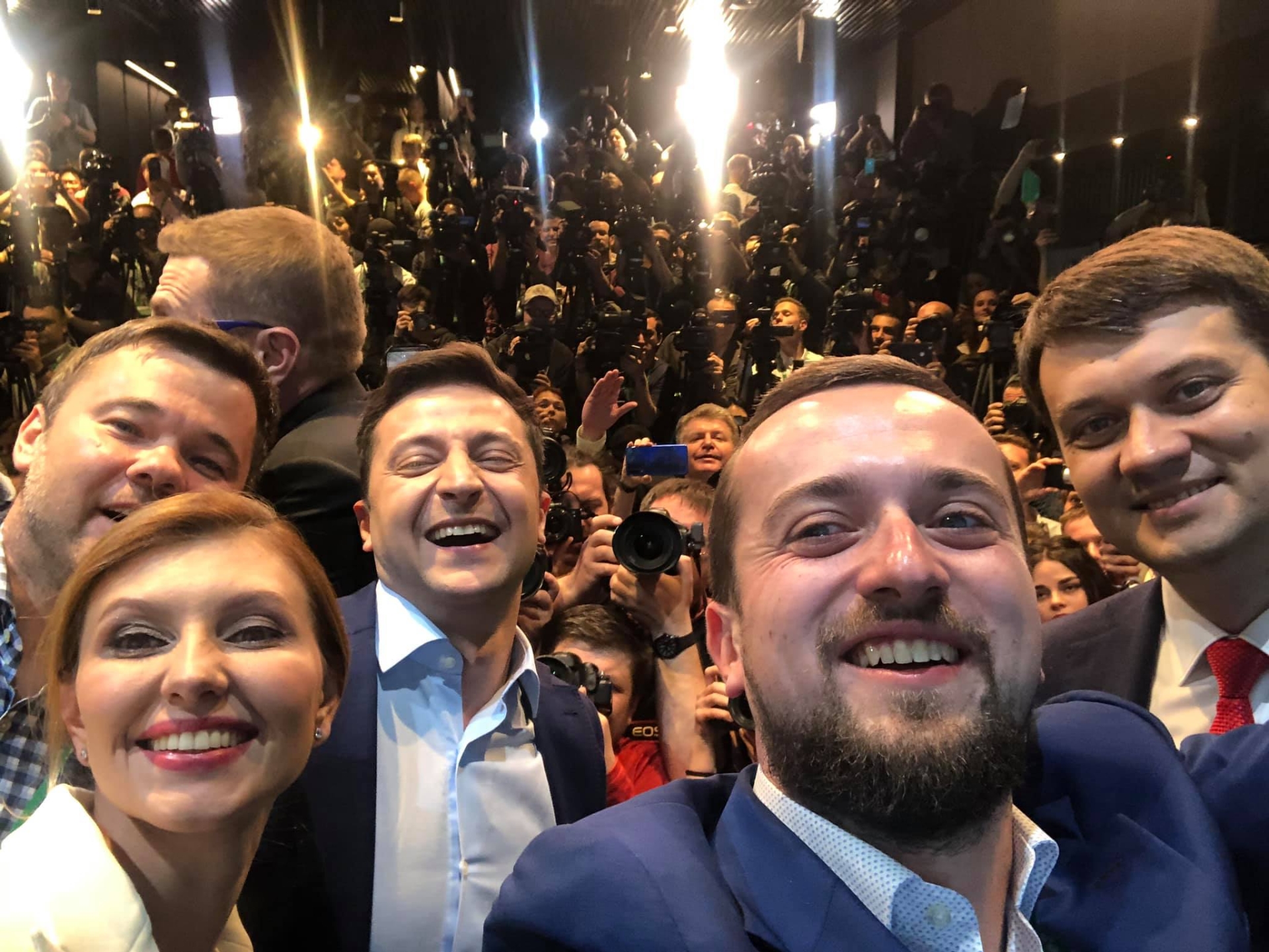 Kyrylo Tymoshenko era un uomo molto vicino a Zelensky da prima che diventasse presidente. Anzi, si può dire che in parte è anche merito suo se lo è diventato. L'azienda di Tymoshenko, la GoodMedia, si è occupata infatti di tutti gli spot della campagna elettorale di Zelensky. Tymoshenko era pure sul palco mentre Zelensky scopriva i risultati delle presidenziali. Qui sotto c'è l'autoscatto di Tymoshenko che ritrae il di lì-a-poco-presidente Zelensky che ride.
