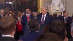 Durante il giuramento, Trump ha tenuto la mano destra in alto mentre ha posato la sinistra sulla Bibbia che secondo il protocollo è tenuta dalla moglie del presidente. Hanno seguito poi quattro rulli di tamburi e l’inno Hail to the Chief, alla cui fine sono stati sparati ventuno colpi di cannone a salve.