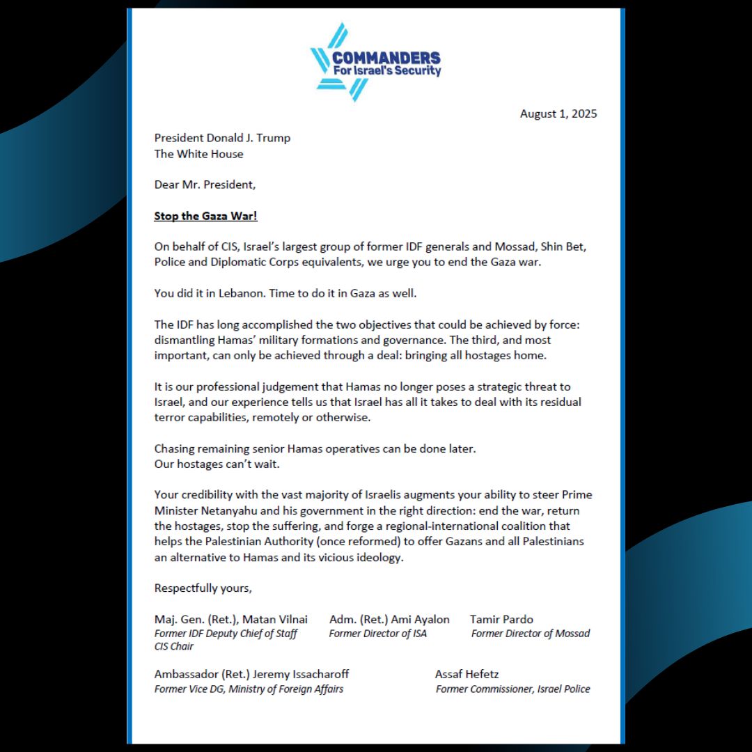 appello di oltre 600 tra ex capi Idf, Mossad e Shin Bet a Trump Fonte: X @cisorgil