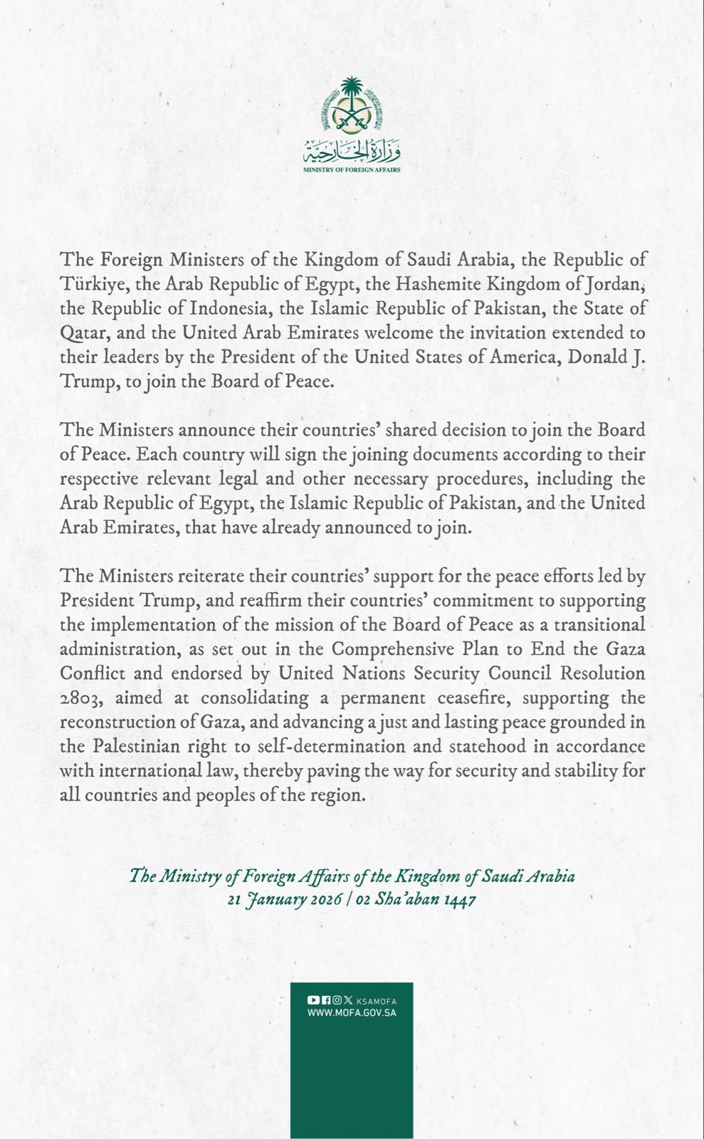 La notizia è arrivata dal tycoon poco dopo che il presidente russo Vladimir Putin ha confermato di aver ricevuto un invito personale ad aderire al futuro Board of Peace, ringraziandolo. "La Russia è pronta a stanziare 1 miliardo di dollari per il Consiglio di Pace, prelevandoli dai fondi congelati negli Stati Uniti" ha informato lo zar sebbene finora nessuna conferma ufficiale sia giunta dal Cremlino circa l'adesione russa al nuovo organismo internazionale. Mosca infatti ha dichiarato di essere ancora in fase di valutazione. Intanto Trump, interrogato dai cronisti della Cnn sul perché anche Putin sia stato invitato al Consiglio di Pace, ha risposto "Vogliamo tutti. Ci sono alcune persone controverse ma sono persone che portano a termine il lavoro. Sono persone che hanno un'enorme influenza. (...) se invitassi solo persone irreprensibili, non ci sarebbe molta gente".