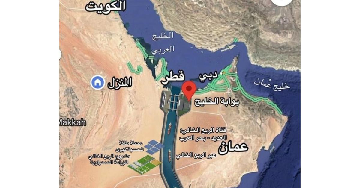 Secondo le immagini diffuse, il tracciato del cosiddetto “Canale Arabo” partirebbe dalla costa orientale dell’Arabia Saudita, nei pressi delle aree industriali affacciate sul Golfo Persico, probabilmente nella zona tra Dammam e Al Jubail. Da lì, il canale attraverserebbe l’entroterra desertico saudita in direzione sud-est, tagliando vaste aree disabitate del Rub’ al Khali, il cosiddetto “Quarto Vuoto”.