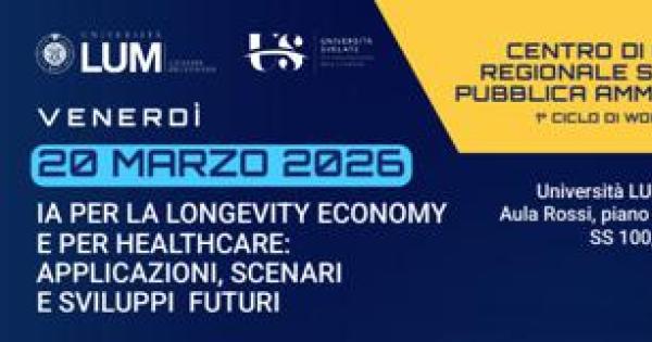 Bari, 19 mar. (Adnkronos/Labitalia) - Venerdì 20 marzo 2026, dalle ore 9:30, l’Università Lum Giuseppe Degennaro ospiterà l’evento 'IA per la longevity economy e per healthcare: applicazioni, scenari e sviluppi futuri', un momento di confronto dedicato alle opportunità e alle sfide poste dalle nuove tecnologie e dai cambiamenti demografici. L’iniziativa si inserisce nel programma nazionale 'Università svelate', promosso dalla Crui -Conferenza dei rettori delle università italiane e realizzato in collaborazione con l’Anci-Associazione nazionale comuni italiani. L’evento rientra inoltre nelle attività del Centro sull’Intelligenza Artificiale della Regione Puglia, con l’obiettivo di rafforzare il dialogo tra università, istituzioni e territorio su temi di rilevanza strategica per la società contemporanea.