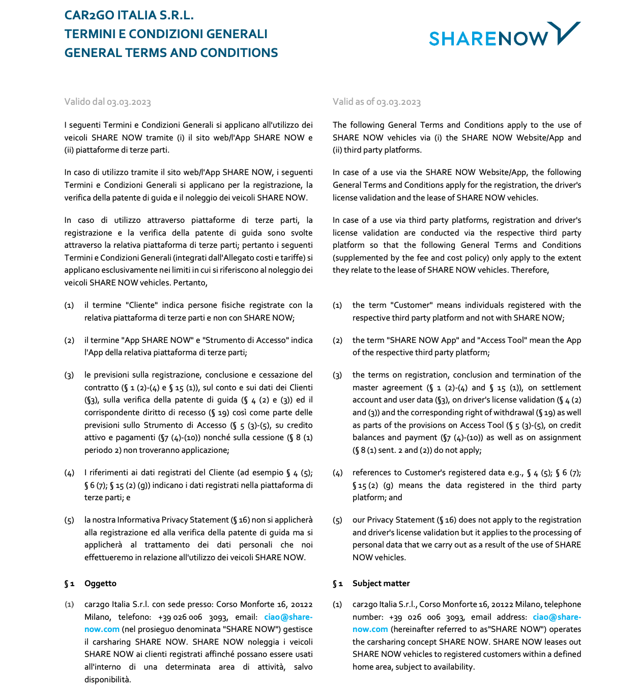 Clicca sull'immagine per scaricare i Termini contrattuali di Share Now: