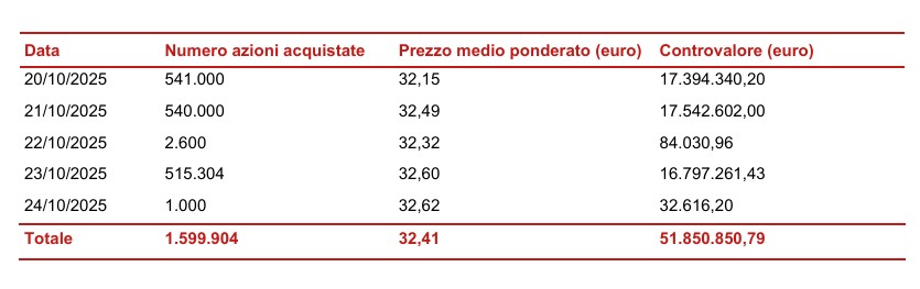 A seguito degli acquisti effettuati, alla data del 24 ottobre 2025 la Società e le sue controllate detengono n.