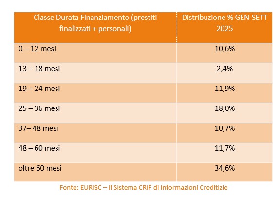 Se guardiamo alle diverse forme tecniche, i prestiti finalizzati prediligono un arco temporale di 2 e 3 anni (27,6%), mentre i prestiti personali si sono indirizzati su piani di rimborso superiori ai 5 anni (52,8%).