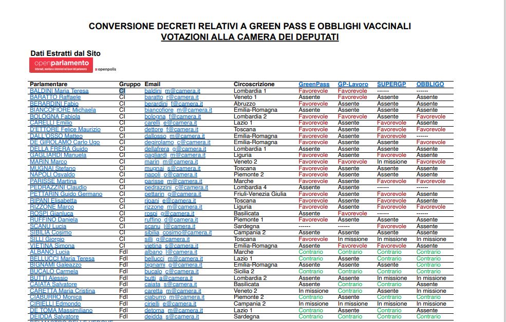 Parlamentare Gruppo Email Circoscrizione GreenPass GP-Lavoro SUPERGP OBBLIGO