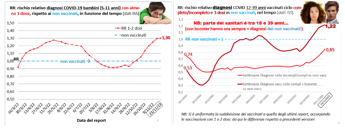 Il messaggio, che ciascuno può subito verificare alle fonti indicate, è sintetizzato nelle righe seguenti e nelle slide allegate, riferite ai bambini da 5 a 11 anni e alle tre fasce d’età successive considerate dall’ISS, in cui operano anche tutti i lavoratori della Sanità che varie forze politiche e sociali vorrebbero ancora soggetti alle vaccinazioni obbligatorie.