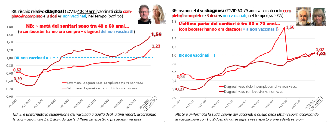 Il messaggio di fondo si può così riassumere: il tempo è la variabile fondamentale. Infatti la protezione vaccinale dall’infezione, buona all’inizio con le precedenti varianti, ma solo mediocre con Omicron, declina poi rapidamente, si azzera in pochi mesi, e quindi s'inverte, cioè i vaccinati diventano in media più soggetti a infettarsi dei non vaccinati. I booster ripristinano in modo transitorio la protezione iniziale, ma si torna a perderla velocemente, con un percorso che sembra accelerato al ripetersi dei successivi inoculi. *