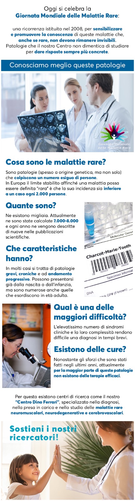 Per questo esistono centri di ricerca come il nostro "Centro Dino Ferrari" specializzato nella diagnosi. nella presa in carico e nello studio delle malattie rare neuromuscolari, neurodegenerative e cerebrovascolari.