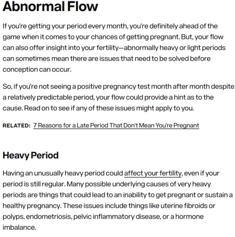 Secondo uno studio pubblicato nel 2016 le alterazioni del regolare ciclo mestruale di una donna sono associate a una ridotta fertilità e hanno un effetto negativo sulle possibilità di rimanere incinta.