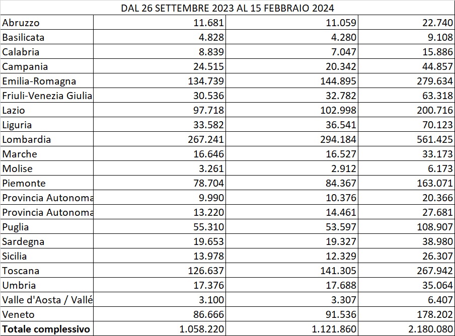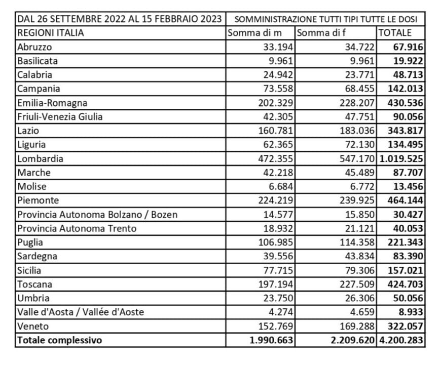 Il flop della campagna vaccinale Covid di quest'anno è evidente, e lo dimostrano i numeri. Numeri che dicono come siano state somministrate soltanto 2.180.080 dosi di vaccino Covid nel periodo che va dall'inizio della campagna vaccinale, quindi 26 settembre 2023 al 15 febbraio 2024, ultima data che è possibile consultare. Se si pensa che nello stesso periodo di un anno fa, erano state somministrate 4.200.283 dosi (crollo del 48%) mentre l'anno prima ancora, 48.462.680 (crollo del 95%), ci si accorge come l'incessante campagna vaccinale abbia dato tutt'altro che i suoi frutti. I dati sono elaborati da #DifesaMinori.