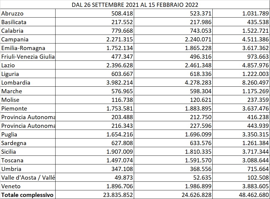 Crollo del 95% di vaccinazioni se prendiamo in esame la data nel quale è iniziata la campagna per il vaccino Covid, 26 settembre 2023, l'ultima che è possibile consultare, 15 febbraio 2024, e la paragoniamo allo stesso periodo dell'anno 21-22. In questo arco di tempo, ad evidenziare il minor calo è stata la Toscana, -92%. Le regioni che hanno evidenziato il maggior calo sono Campania e Sicilia (99%).